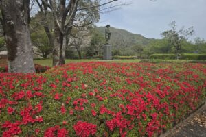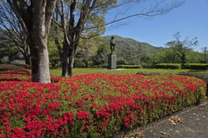 左から牧水銅像付近・ふるさとの家前広場・ふるさとの家前・ちびっこ広場・展望台から...